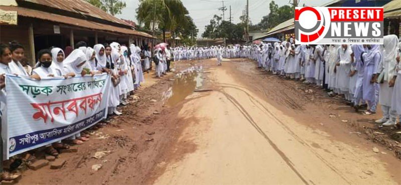 ইভটিজিং বন্ধ ও সড়ক সংস্কারের দাবিতে শিক্ষার্থীদের মানববন্ধন