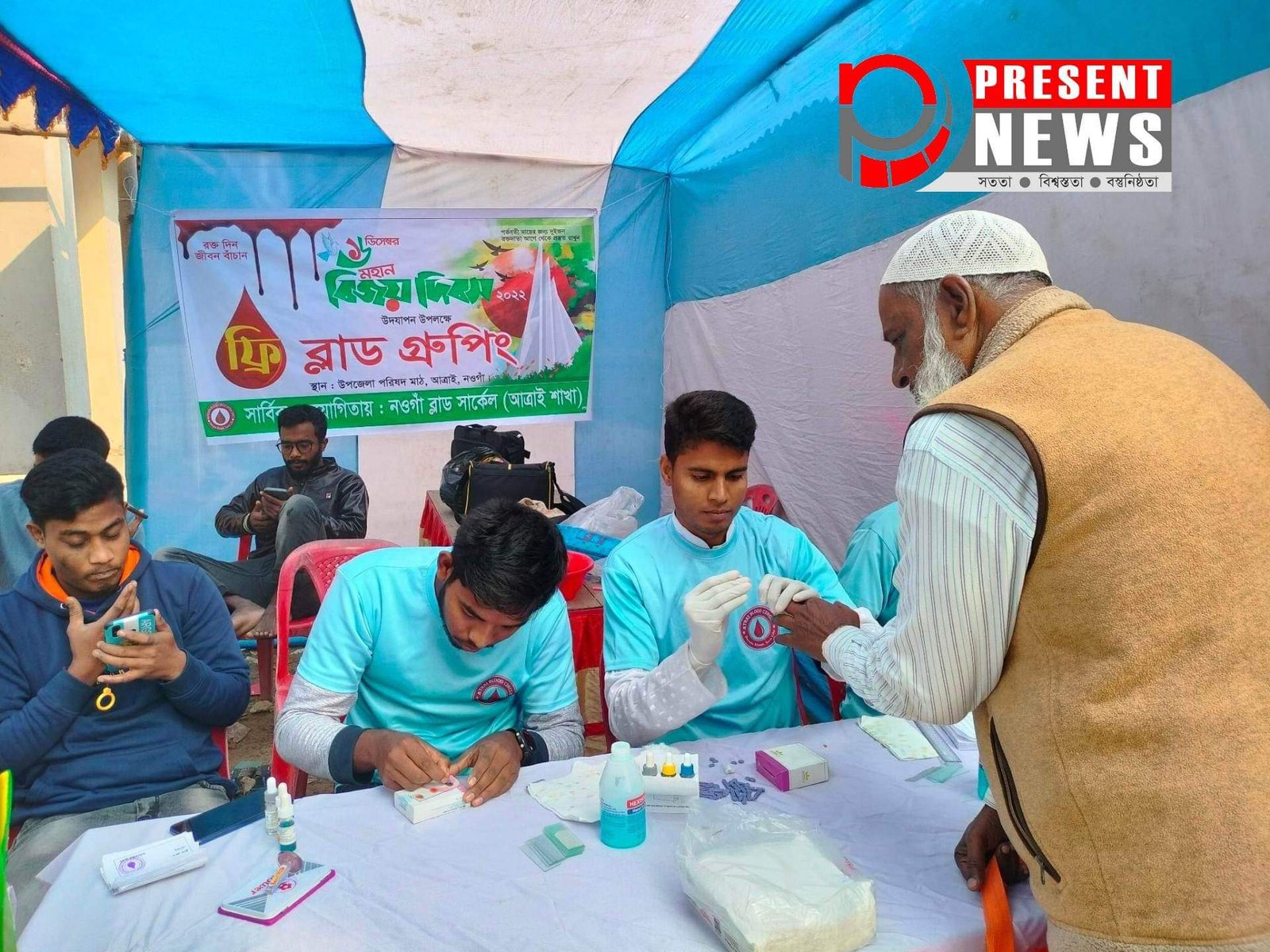 নওগাঁ ব্লাড সার্কেলের উদ্যোগে বিজয় দিবসে ফ্রি ব্লাড গ্রুপিং ক্যাম্পেইন